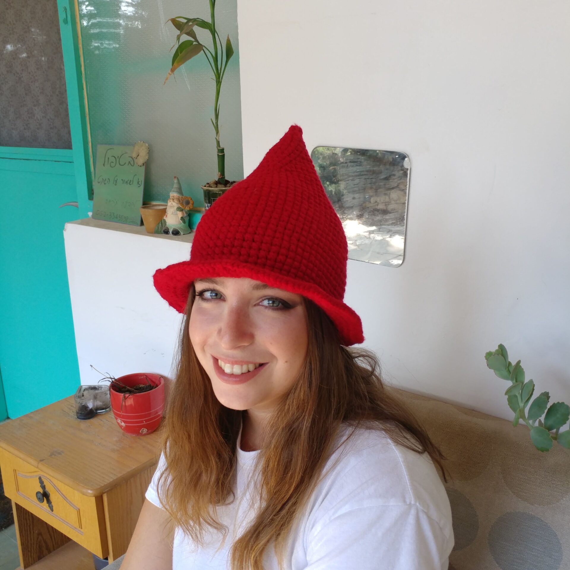 אניה - כובע פייה שדונית מכשפה קוסמת סרוג בעבודת יד