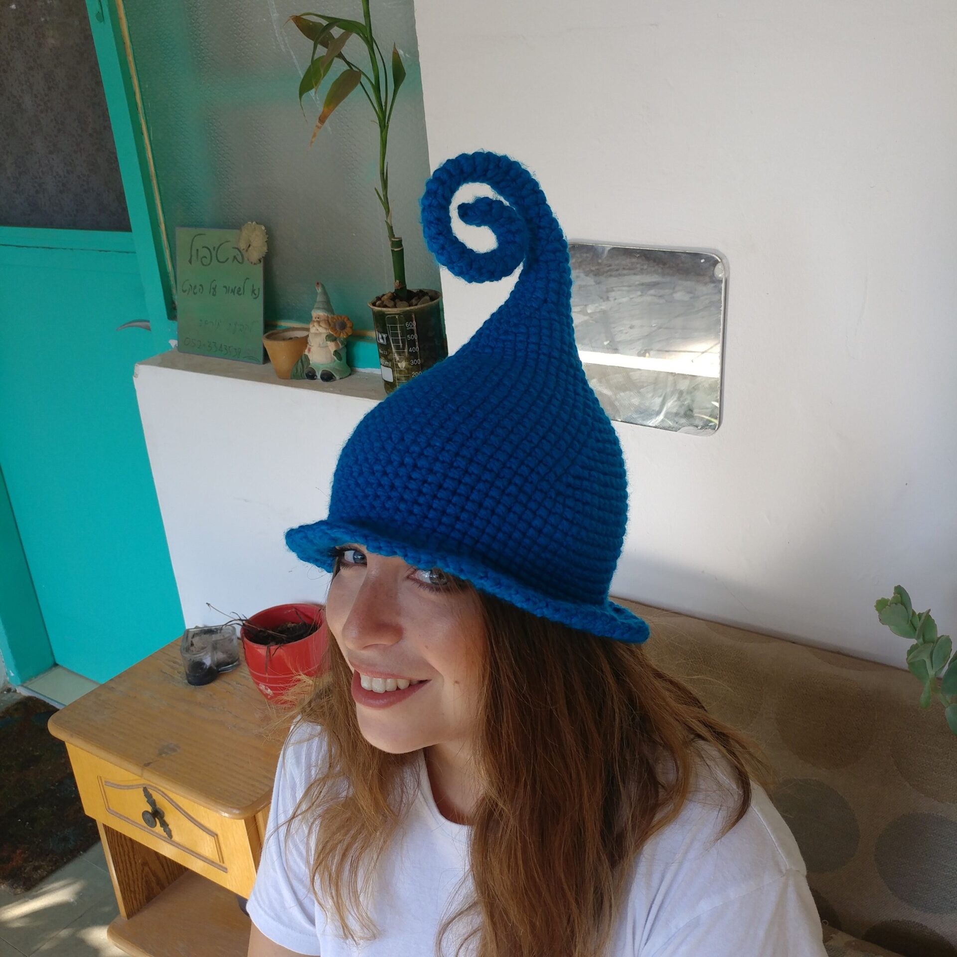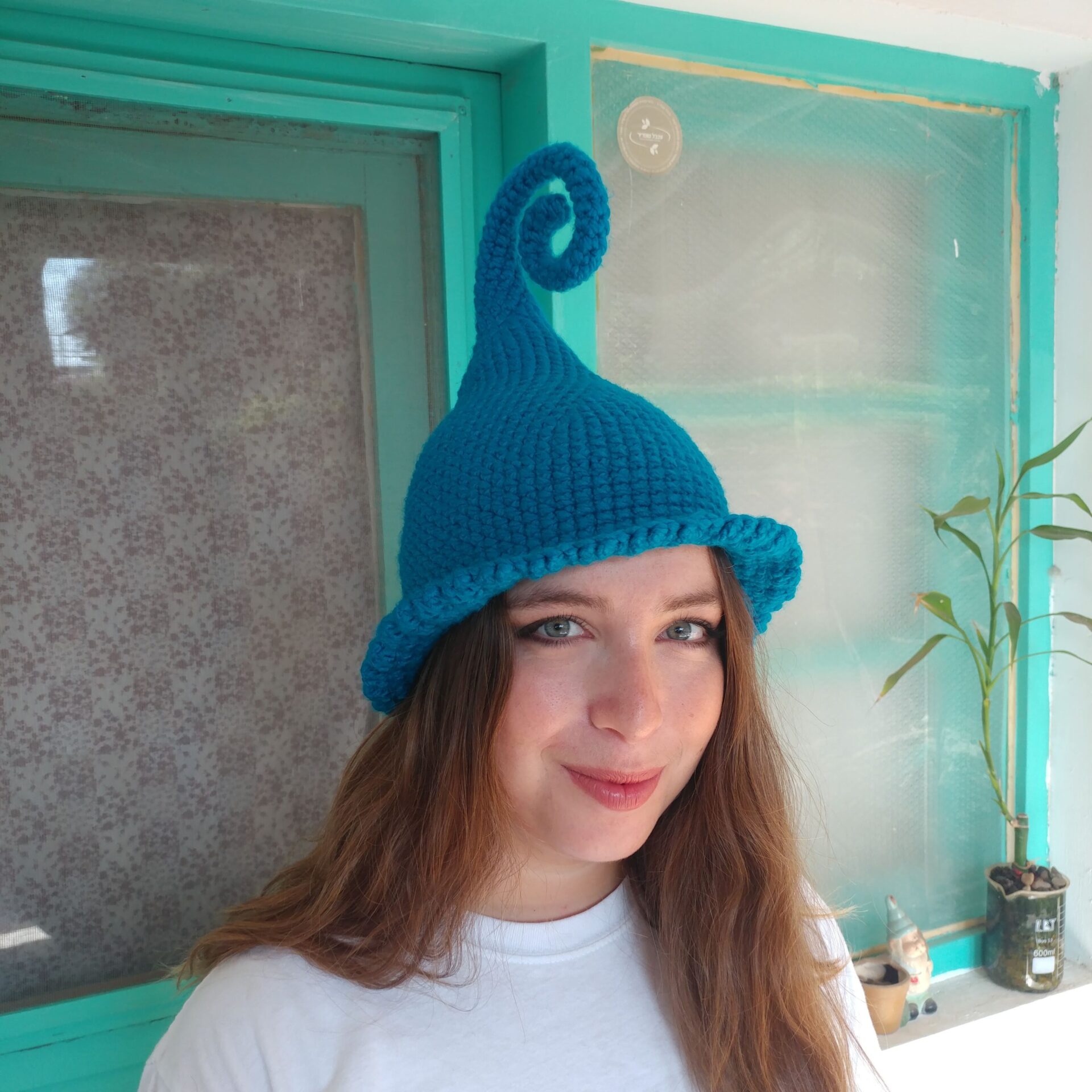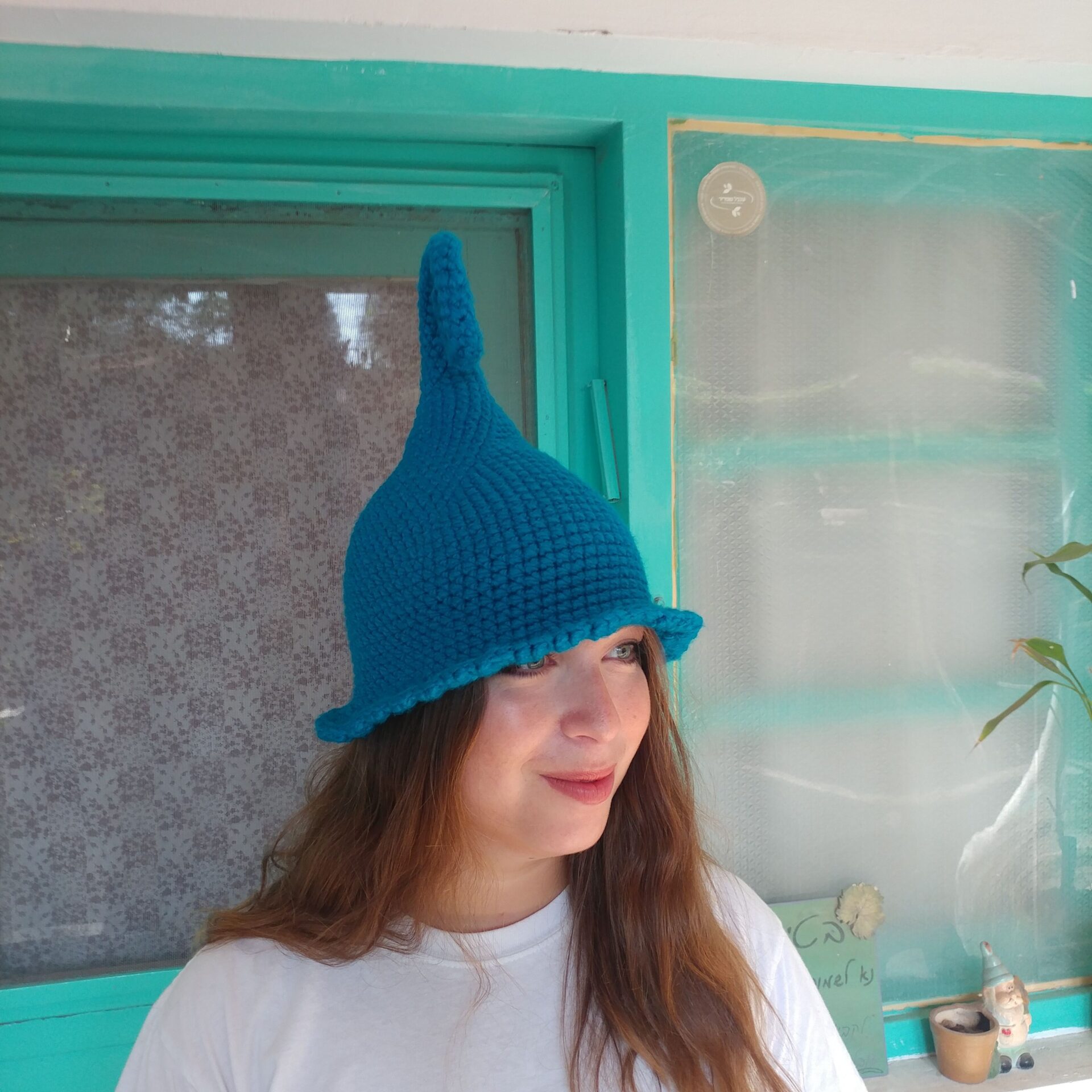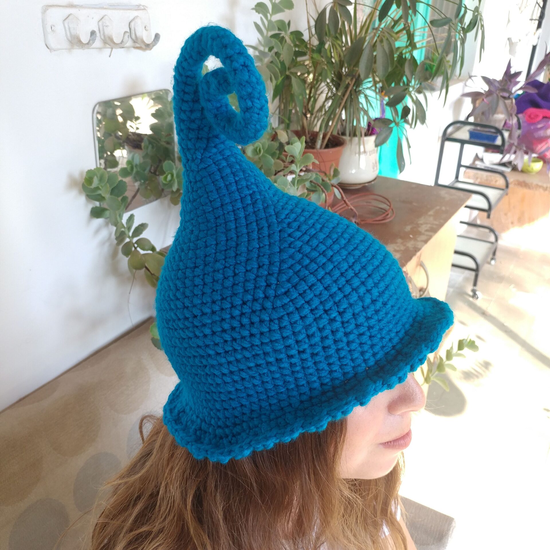 דואן בטורקיז – כובע פייה שדונית מכשפה קוסמת סרוג בעבודת יד
