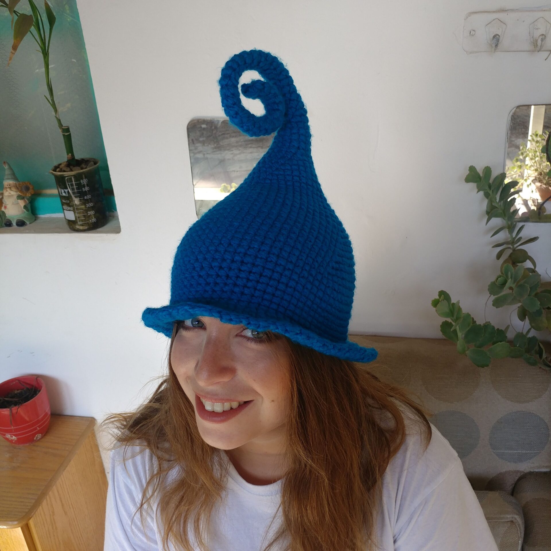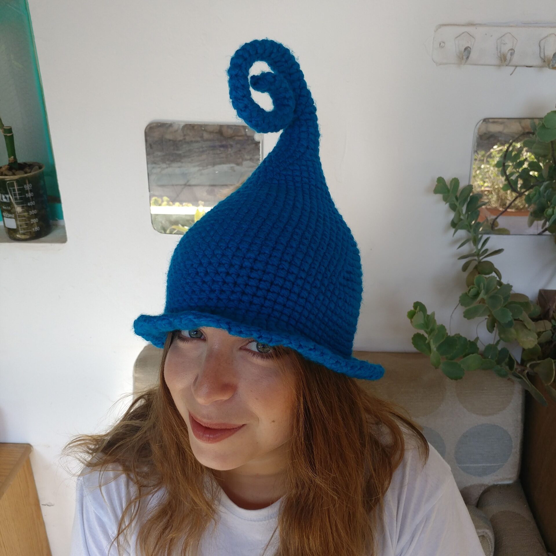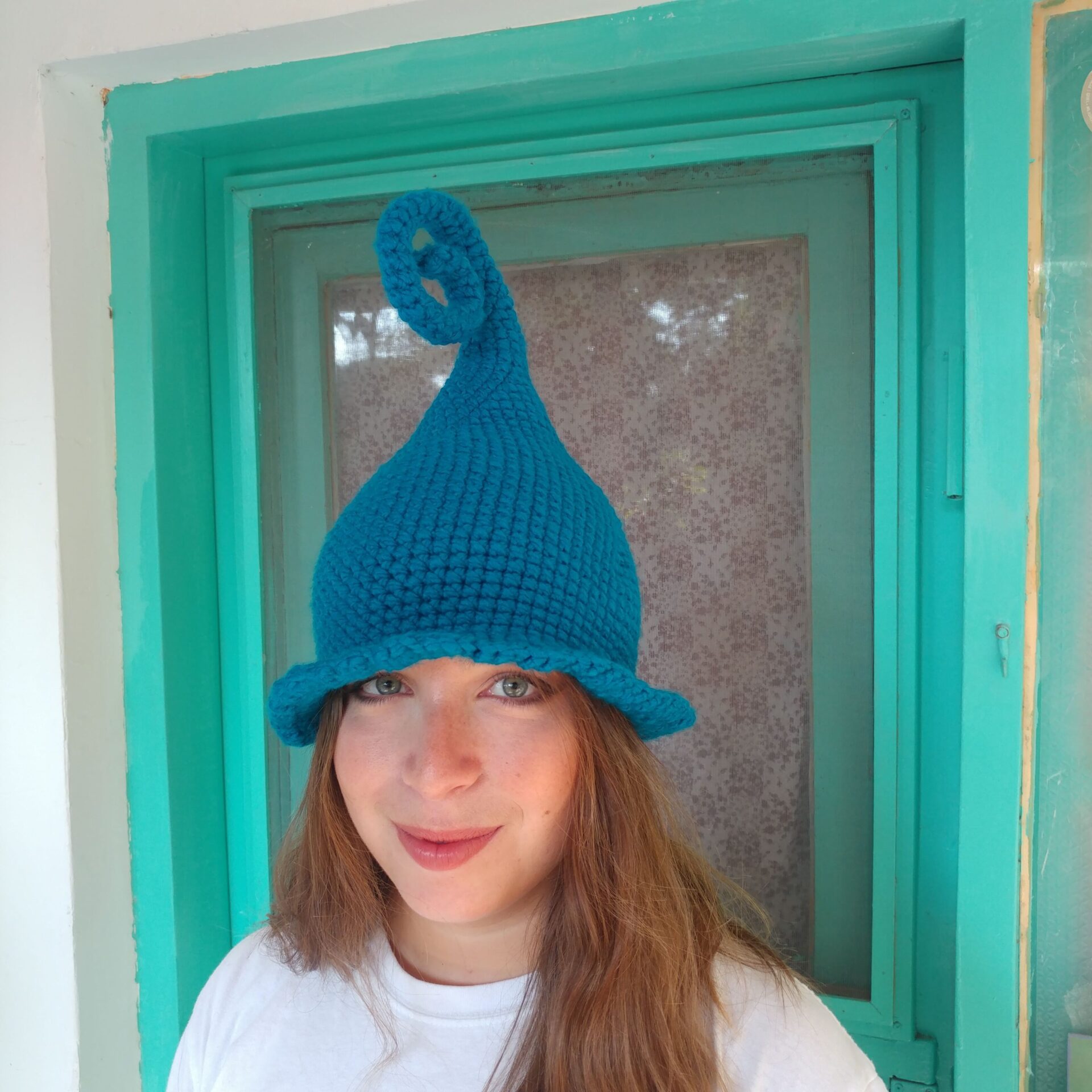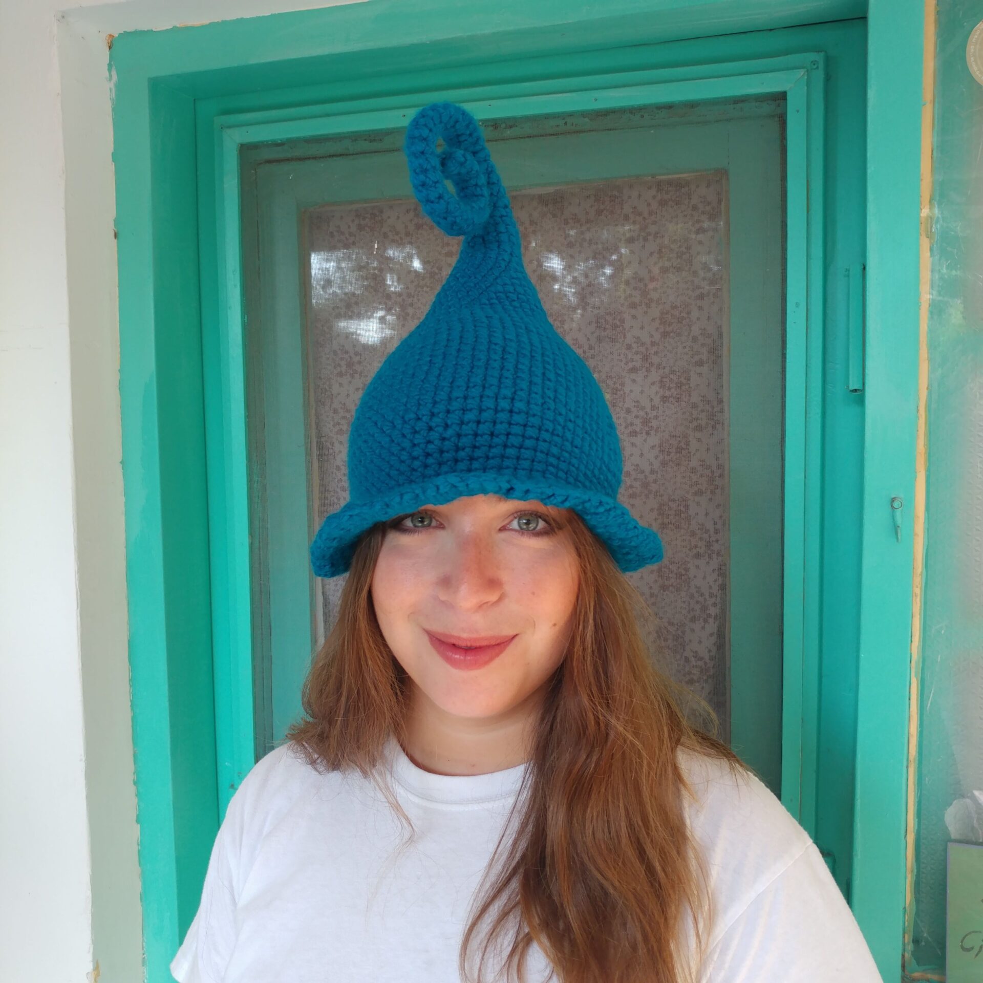 דואן בטורקיז – כובע פייה שדונית מכשפה קוסמת סרוג בעבודת יד