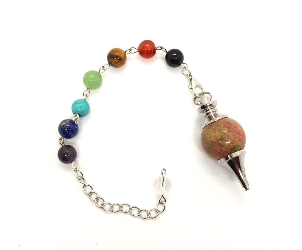 מטוטלת יוניקייט לחיזוי עוצמתי עם שרשרת חרוזי קריסטלים המשקפים את שבעת הצ’אקרות. מעולה לעבודה עם הצ’אקרות. יוניקייט היא קריסטל של חזיונות וראיה אל חושית. מטוטלת יוניקייט תהיה כלי עוצמתי לחיזוי בזכות היכולות שלה. מצויינת למטפלים ומתקשרים.