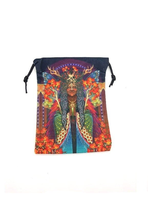 שקיק מהמם עם הדפס ססגוני של סבתא שמאנית. מתאים לטארוט או רונות.