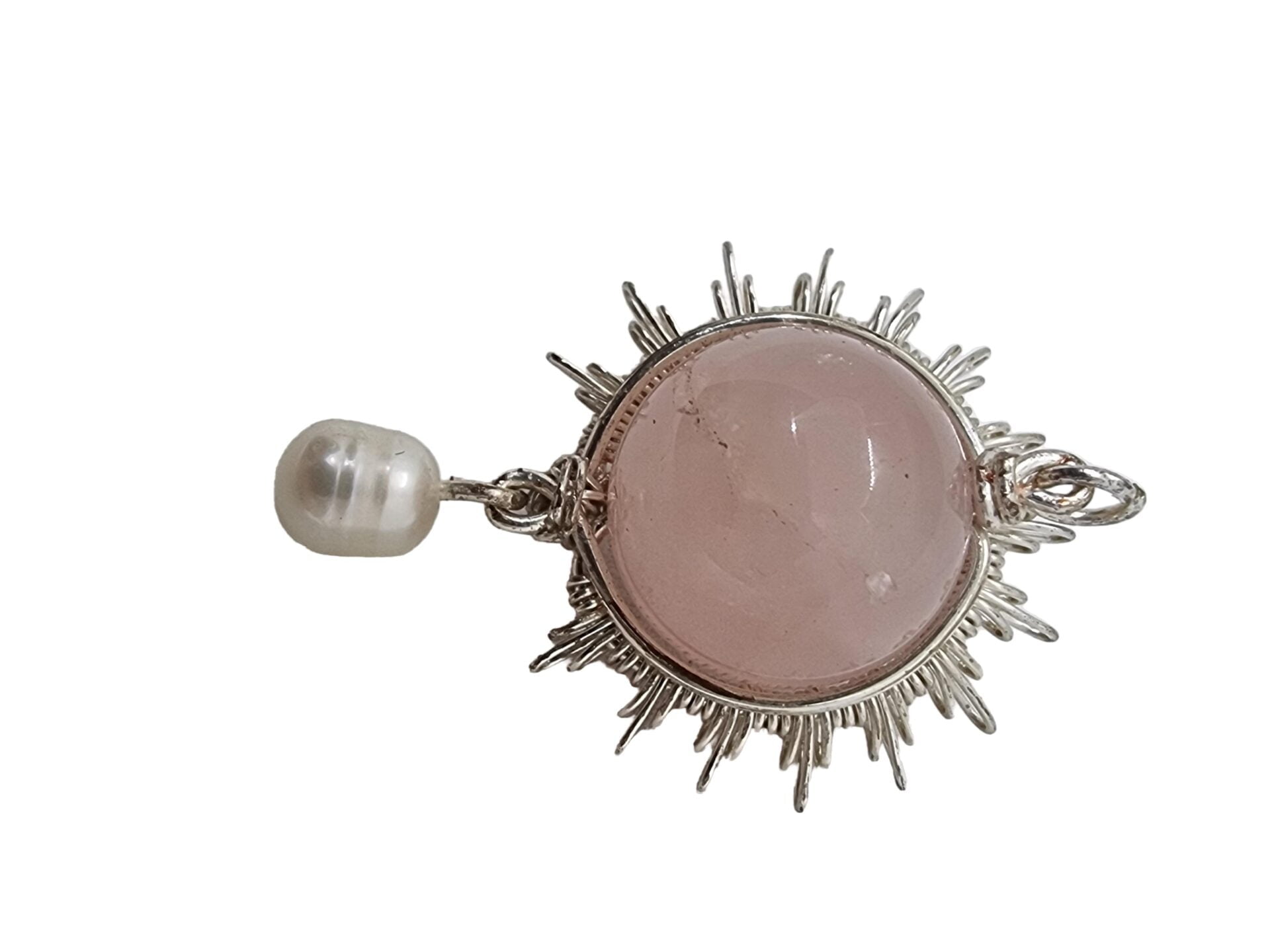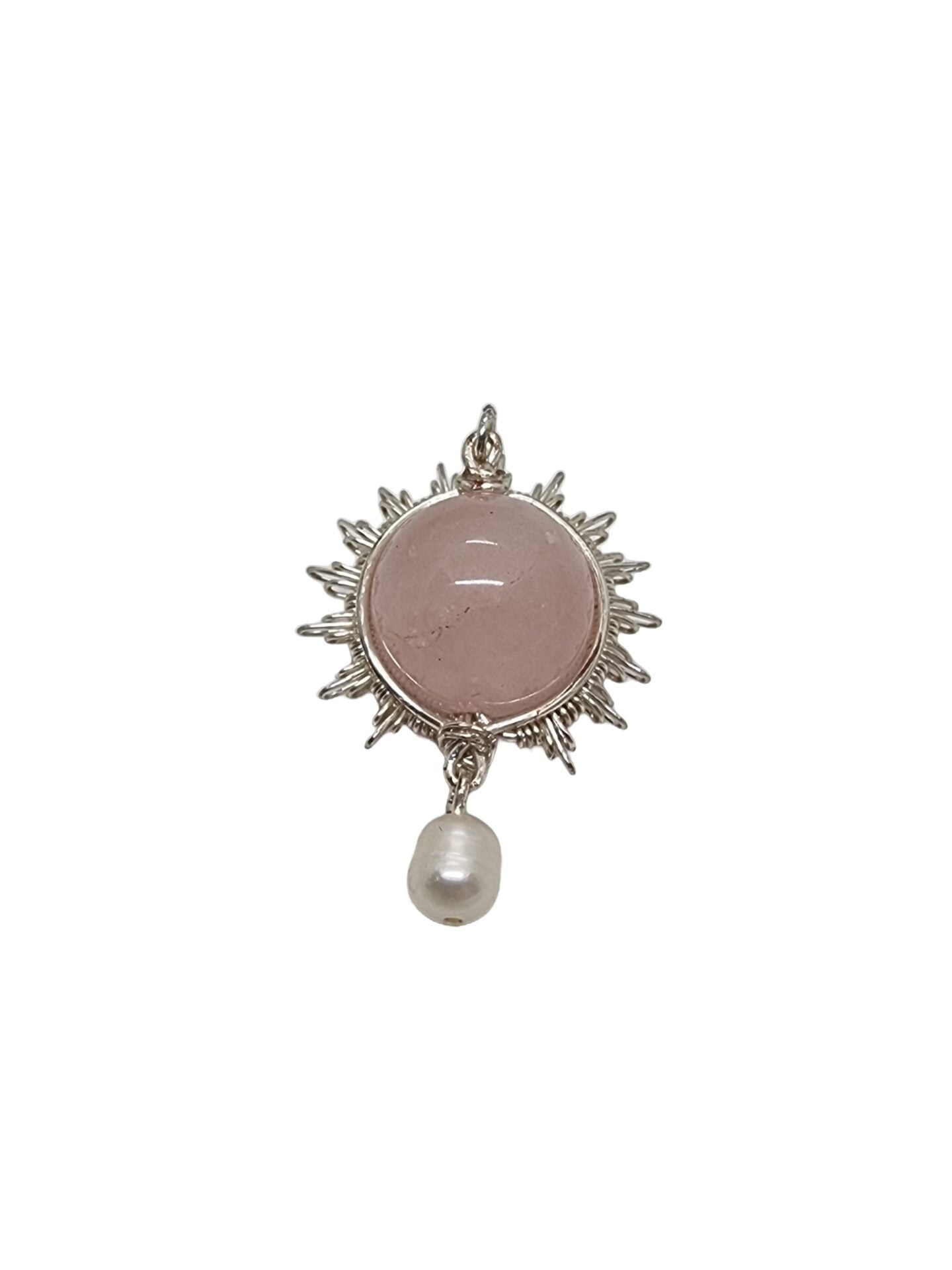 תליון רוזקוורץ עדין עם פנינה מתורבתת עבודת יד - QA1