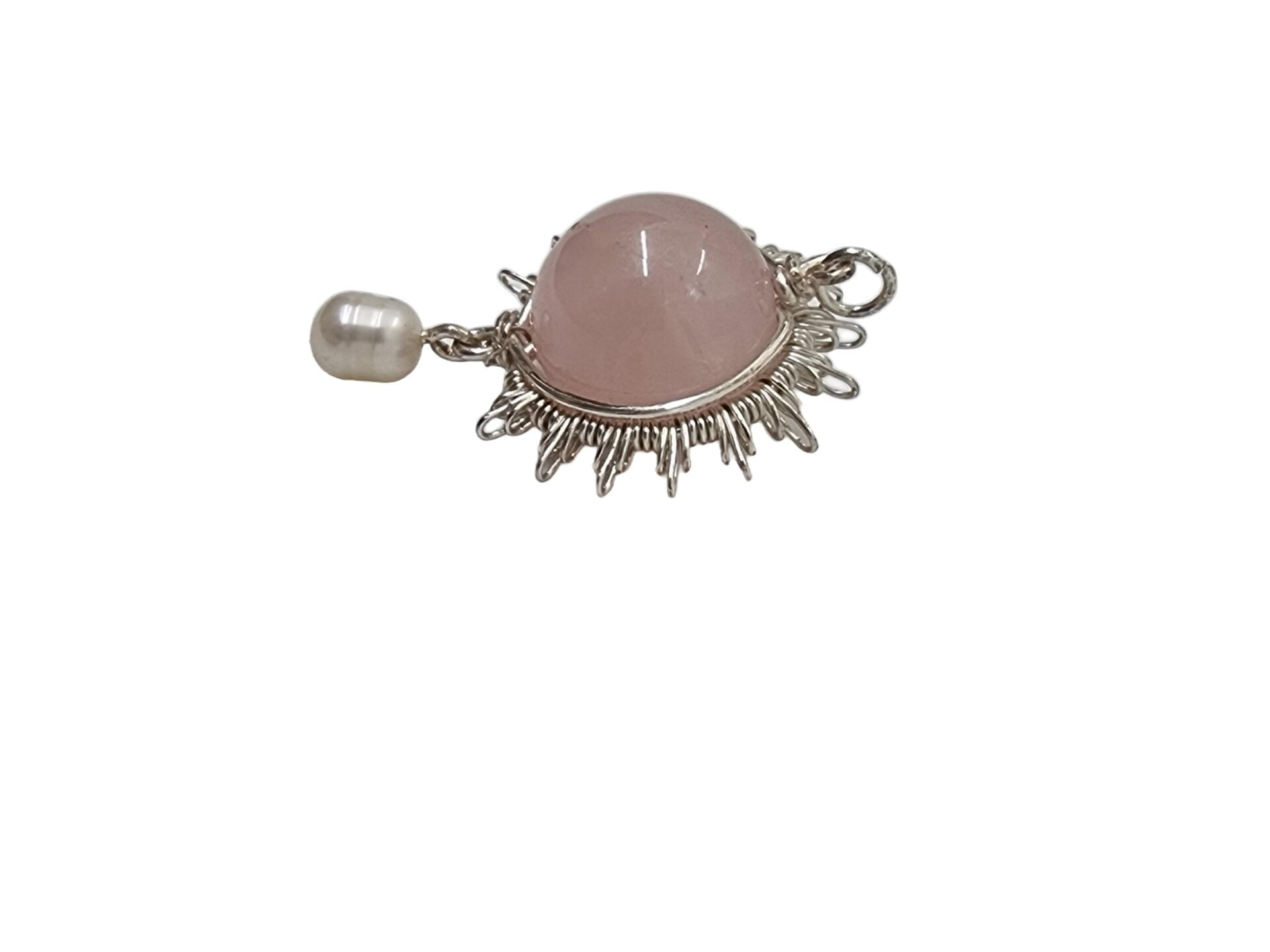 תליון רוזקוורץ עדין עם פנינה מתורבתת עבודת יד