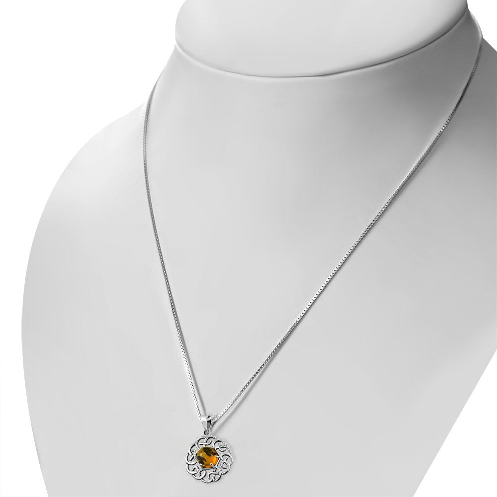 תליון קשר קלטי אלגנטי עם ענבר. עשוי כסף סטרלינג 925.