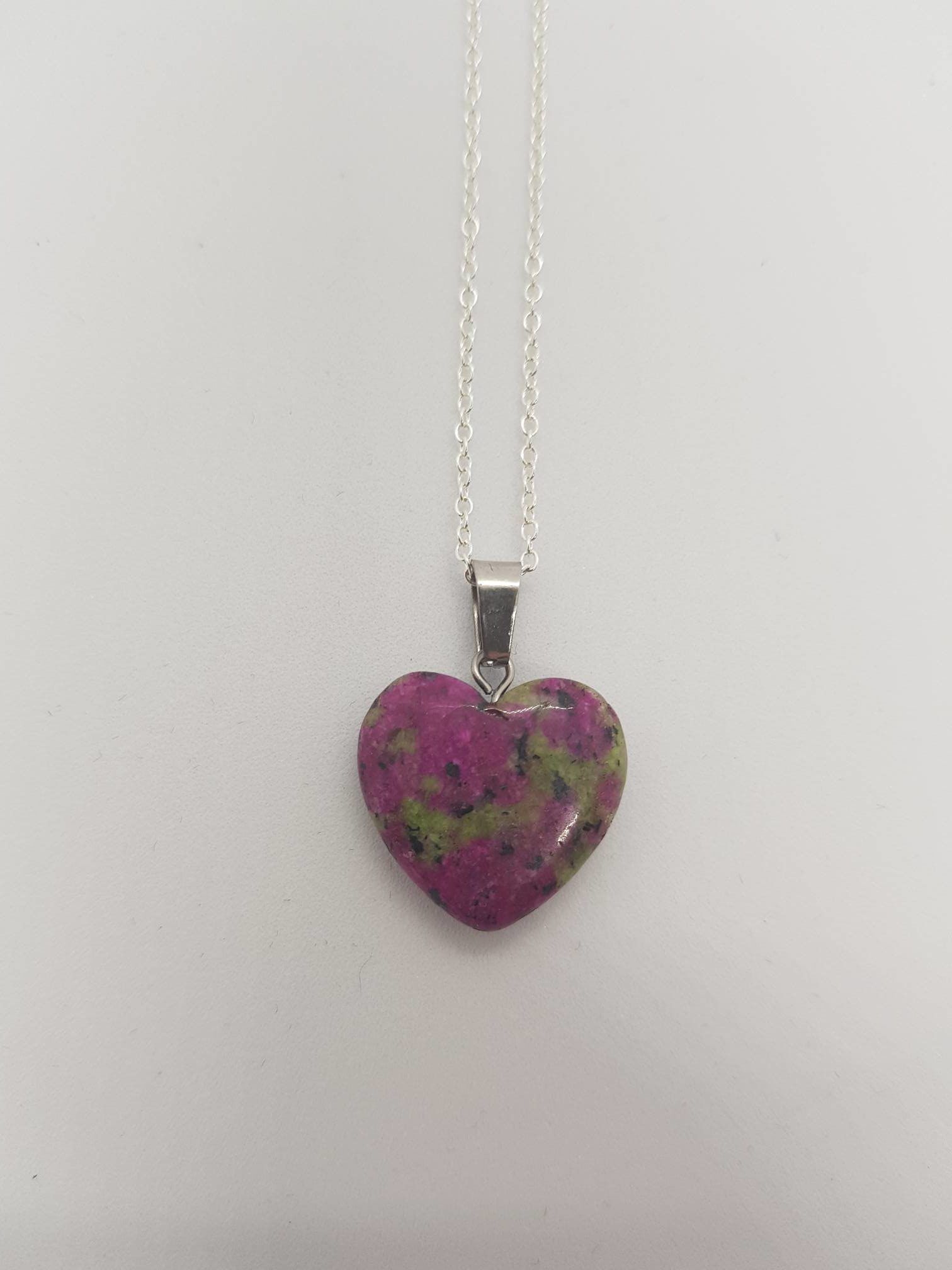 לב מאבן רובי זויסייט עדין ומיוחד עם שרשרת ציפוי כסף.